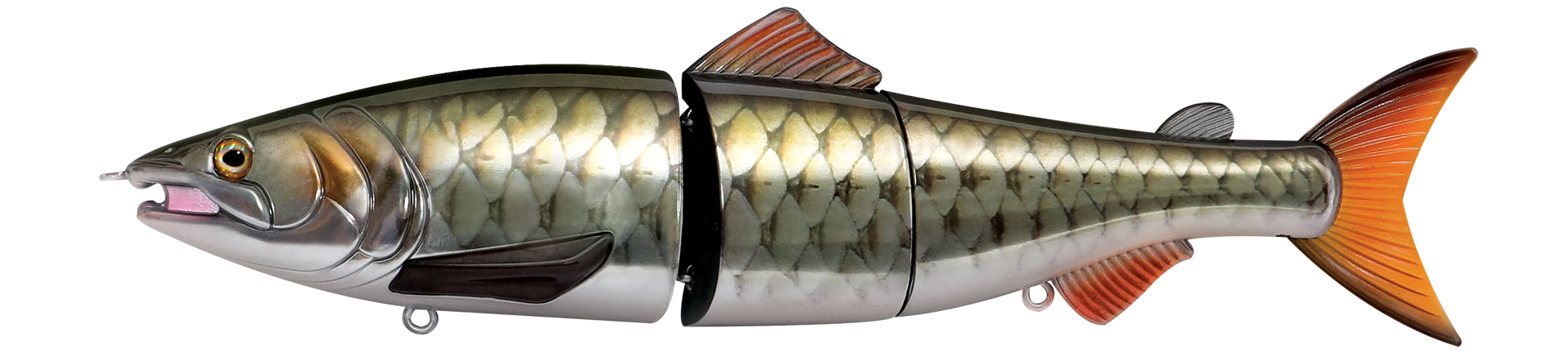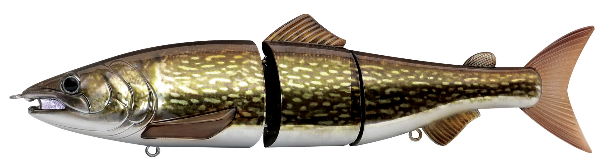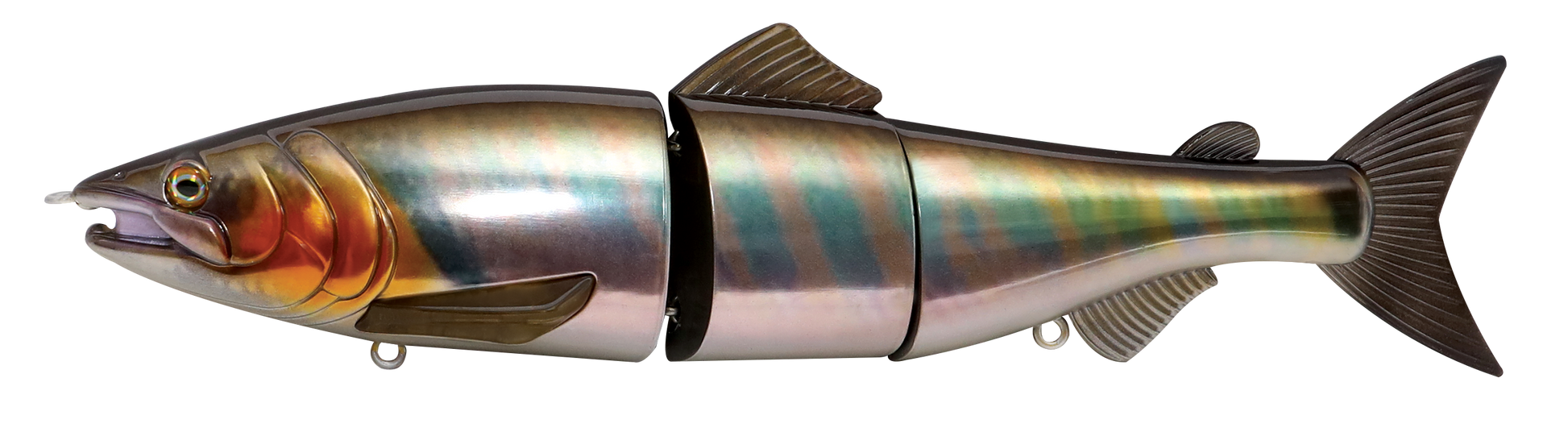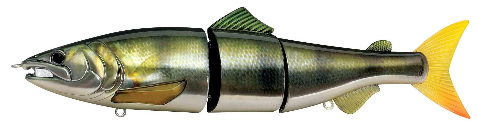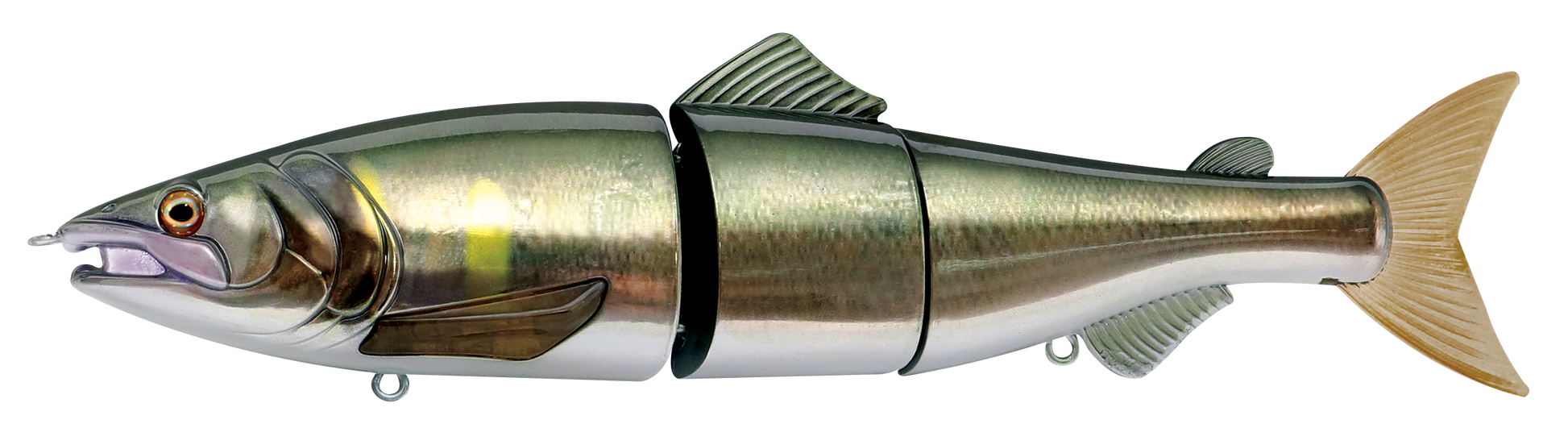The Zerek Affinity is a 220mm, 3 jointed, floating giant glide-bait originally designed for pike and bass fishing applications. Constructed with tough ABS body to ensure durability, the Affinity features a unique joint section which creates a smooth sliding action during retrieval, even on a dead slow retrieve. With its giant profile, it is a perfect lure for massive predators feeding on large baitfish in all water bodies. The Affinity was also designed to give the angler the ability to target predators in different depths by installing the included additional weight to its lips. This would enable the Affinity to sink and target deeper columns without affecting its seductive action.